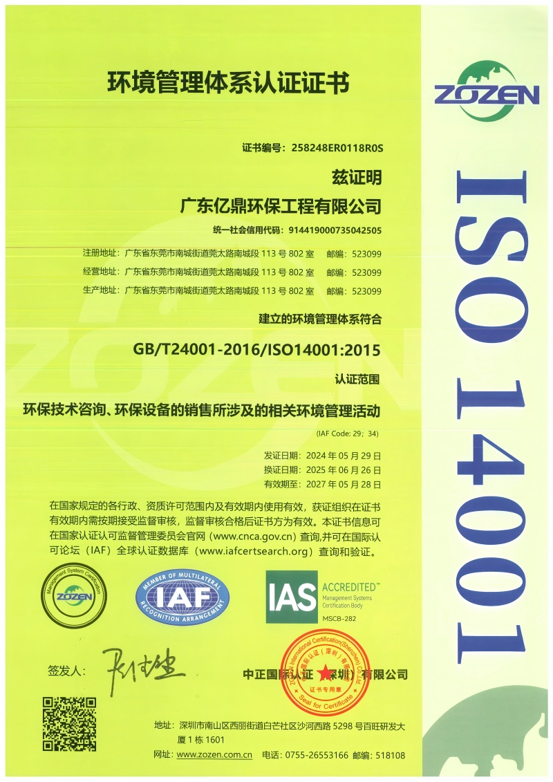 环境管理认证证书